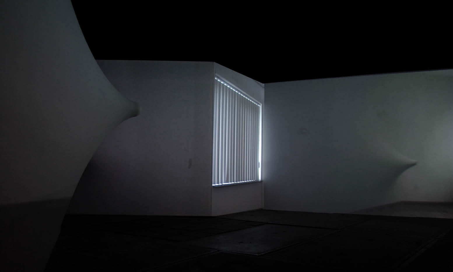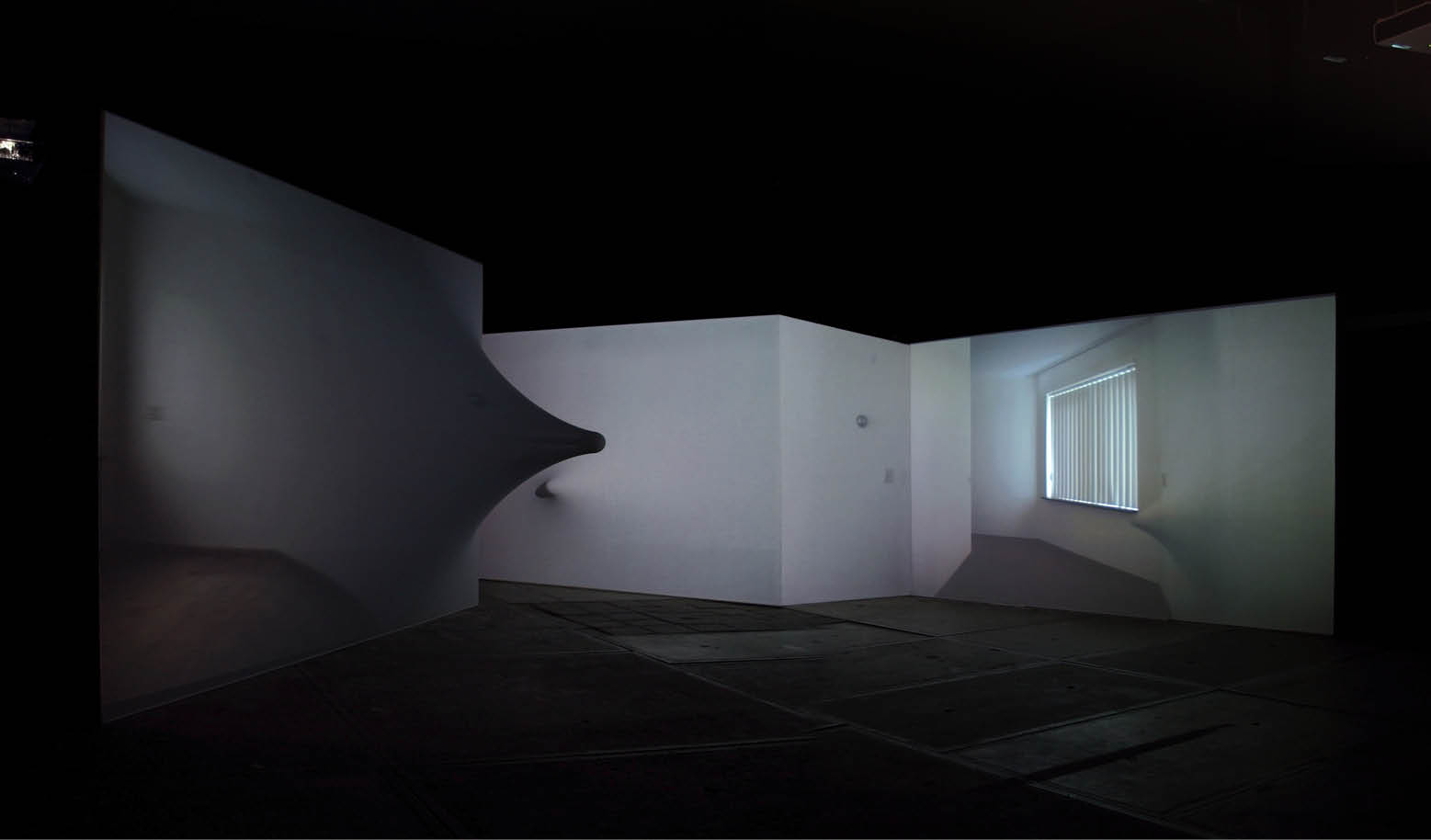 Video installation: moving stretched walls. three video projections of empty rooms.